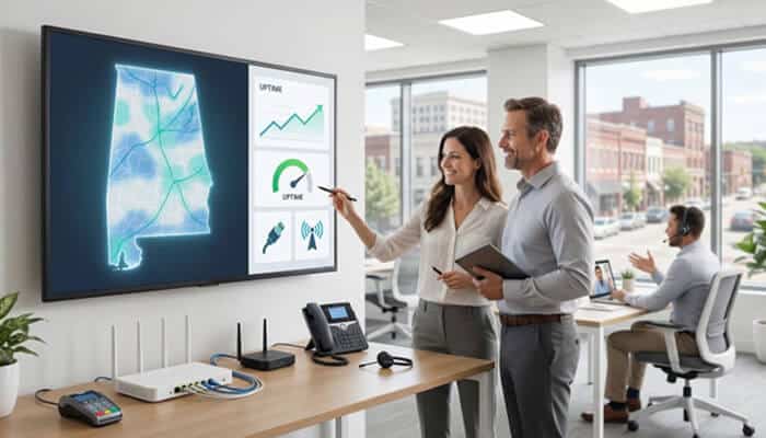 Statewide fiber and 5G coverage keeps Alabama offices, card readers, and VoIP lines reliably connected
